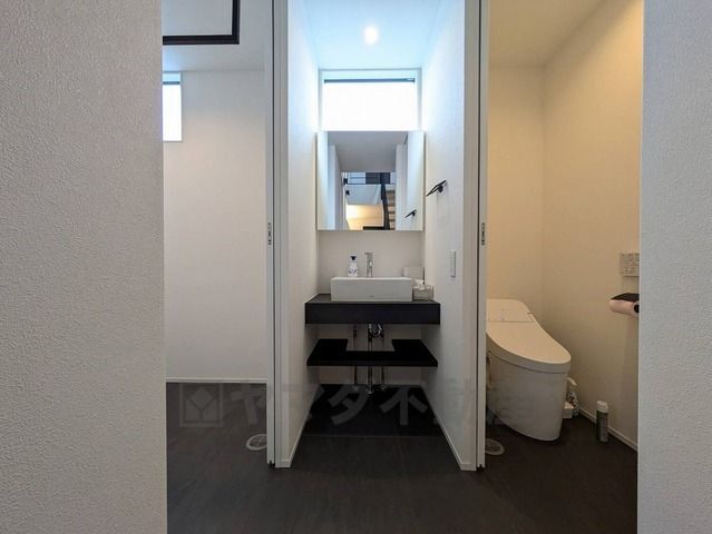 温水洗浄機付トイレです。節水機能もあるので、安心して使えますね。もちろん、1階2階の2ヶ所にトイレがあるので、忙しい朝にもゆとりができますね。