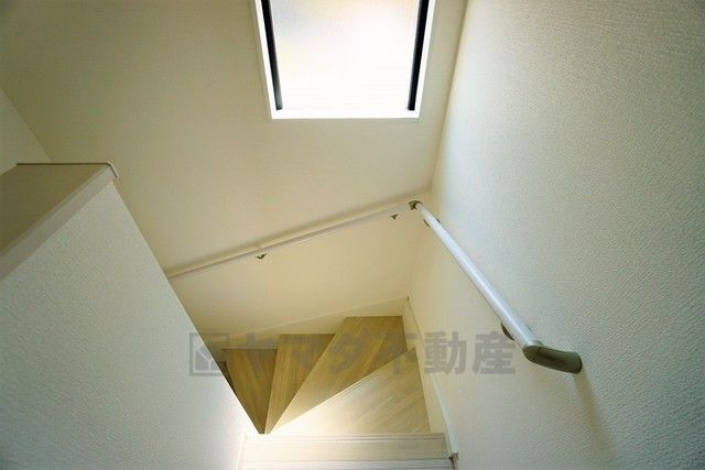 同仕様写真。ご年配の方でも安心できる、手すり付き階段です^^段差も低めで設定されてますので安全性にも優れてますね^^