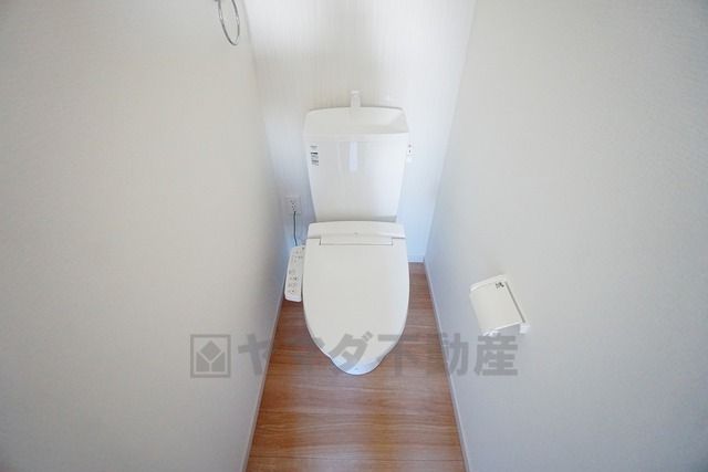 同仕様写真。温水洗浄機付トイレです。節水機能もあるので、安心して使えますね。もちろん、1階2階の2ヶ所にトイレがあるので、忙しい朝にもゆとりができますね。