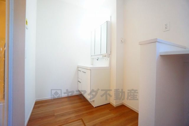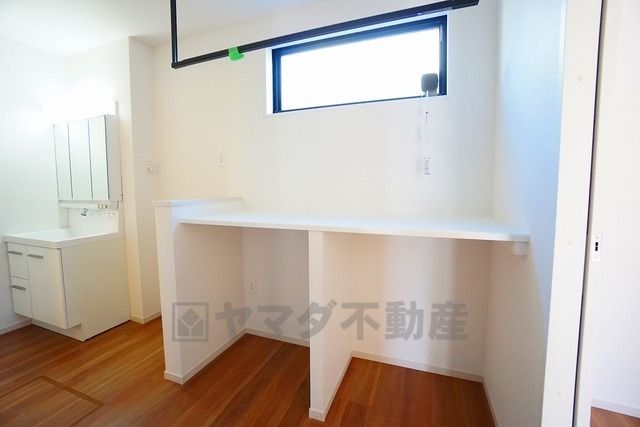 洗面室には便利なカウンター付き。 家事の合間にちょっとした作業やPC利用も可能な多目的スペース^^