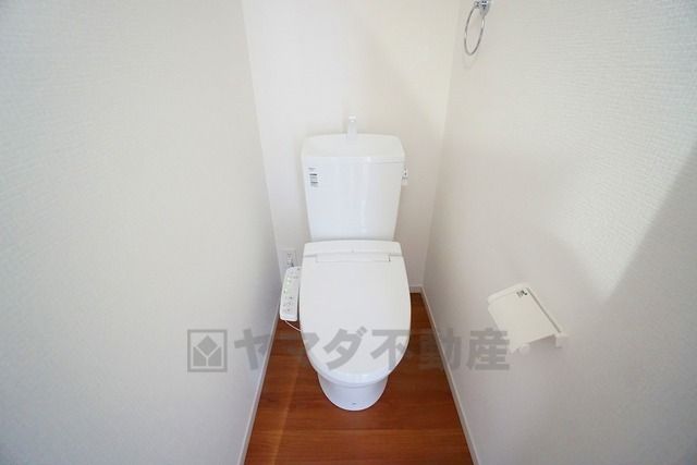 温水洗浄機付トイレです。節水機能もあるので、安心して使えますね。もちろん、1階2階の2ヶ所にトイレがあるので、忙しい朝にもゆとりができますね。