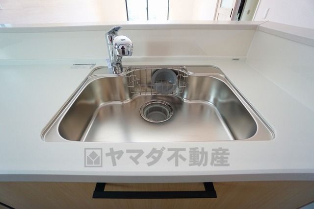 広々とした凸型シンクに洗剤ポケットを標準装備。大きなお鍋など洗いやすいです。洗剤や石鹸、スポンジもすっきりできる収納付き。