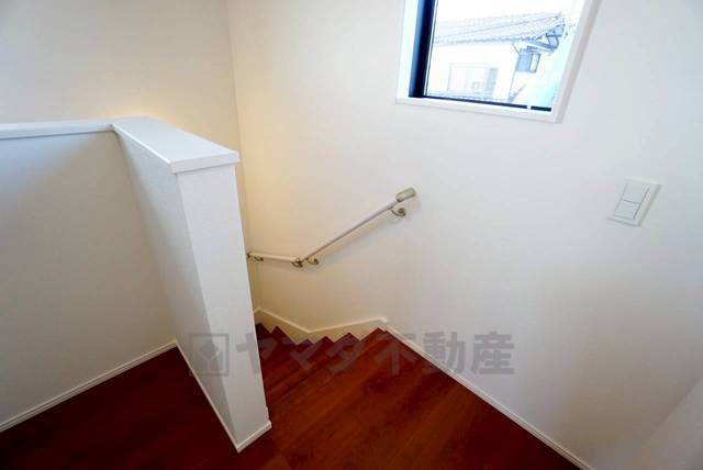 ご年配の方でも安心できる、手すり付き階段です^^段差も低めで設定されてますので安全性にも優れてますね^^