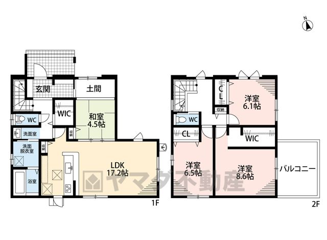 LDK17.2畳(1F)、和4.5畳(1F)、洋8.6畳(2F)、洋6.5畳(2F)、洋6.1畳(2F) |