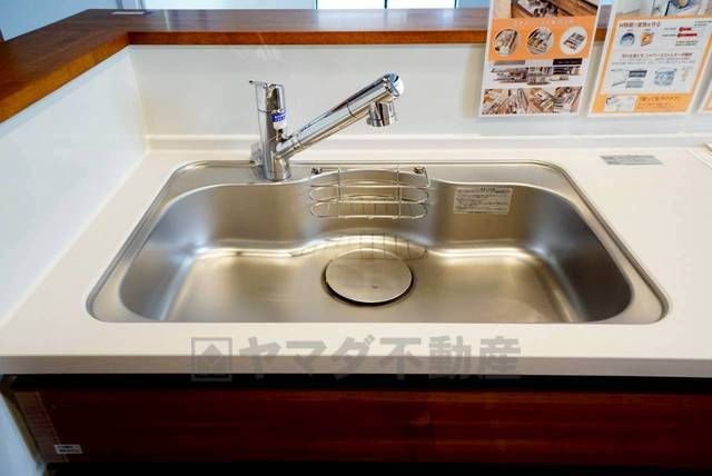 広々とした凸型シンクに洗剤ポケットを標準装備。大きなお鍋など洗いやすいです。洗剤や石鹸、スポンジもすっきりできる収納付き。