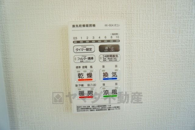 雨の日の洗濯も安心できる浴室暖房乾燥機付き浴室。リモコンで操作もボタン1つで簡単。 浴室暖房乾燥機には、暖房、乾燥、涼風、換気の4つの機能が付いています。タイマー付きです。