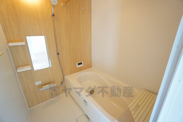 1日の疲れを癒すくつろぎのバスルーム。足を伸ばしてもゆったりと入れるサイズです。お子様と一緒にお風呂に入っても狭くないですね^^