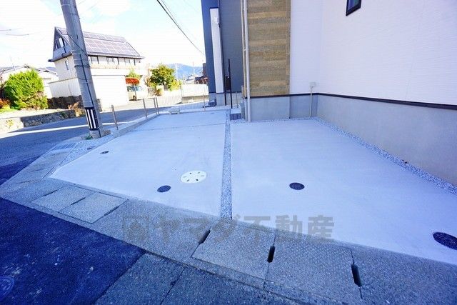 2号棟。前面道路は公道北側約5.6m、公道北西側約6.4m。幅広いため駐車や車の離合がスムーズです^^カースペースは2台分を確保^^