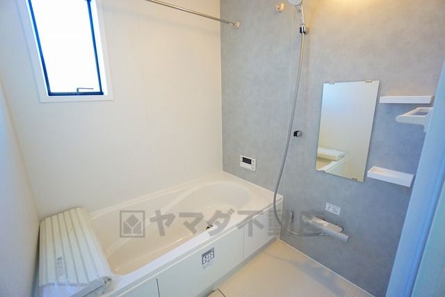 1日の疲れを癒すくつろぎのバスルーム。足を伸ばしてもゆったりと入れるサイズです。お子様と一緒にお風呂に入っても狭くないですね^^