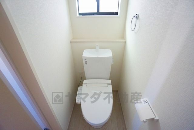 温水洗浄機付トイレです。節水機能もあるので、安心して使えますね。もちろん、1階2階の2ヶ所にトイレがあるので、忙しい朝にもゆとりができますね。