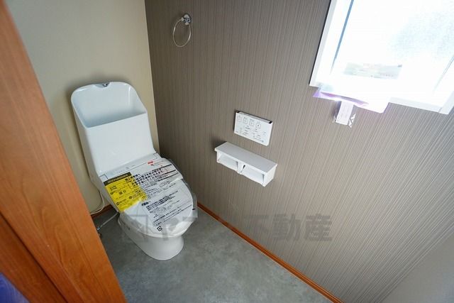 温水洗浄機付トイレです。節水機能もあるので、安心して使えますね。もちろん、1階2階の2ヶ所にトイレがあるので、忙しい朝にもゆとりができますね。手洗い場付き。