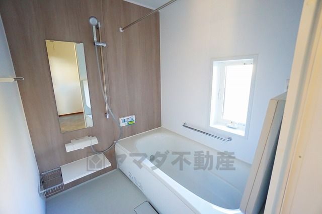 1日の疲れを癒すくつろぎのバスルーム。足を伸ばしてもゆったりと入れるサイズです。お子様と一緒にお風呂に入っても狭くないですね^^