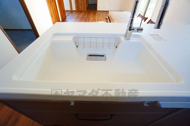 対面式カウンターキッチンでお子様の様子が見守れます。カウンタートップは耐熱性に優れており、日ごろのお掃除もふき取るだけでOK。ステンレスシンクも簡単にお掃除できますよ。