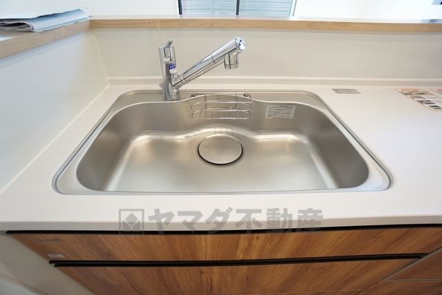 広々とした凸型シンクに洗剤ポケットを標準装備。大きなお鍋など洗いやすいです。洗剤や石鹸、スポンジもすっきりできる収納付き。