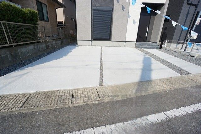 1号棟。駐車スペースは2台以上確保^^前面道路は広く出入りしやすいですよ^^