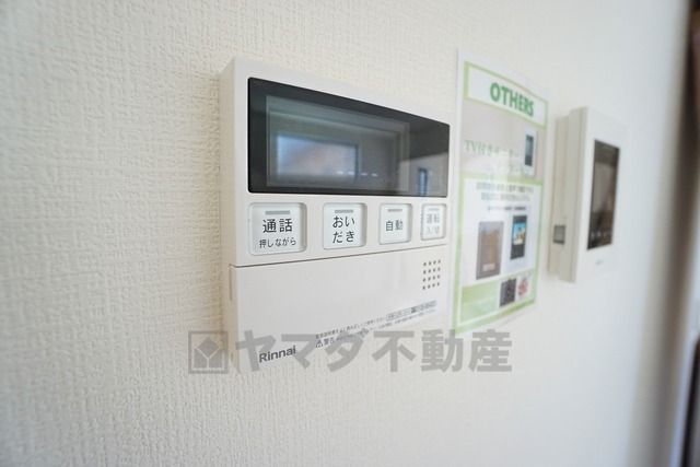 キッチン横からお湯張り、追い炊き、足し湯がボタン一つで楽々操作できる給湯機リモコンです^^忙しい夕飯の準備の時間帯に重宝しますね。
