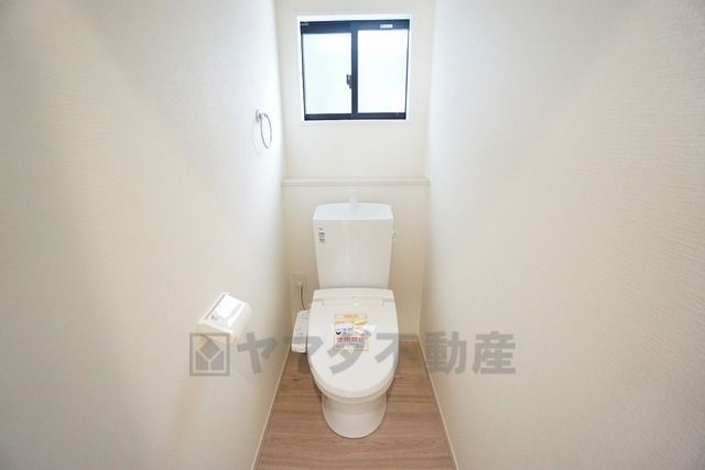 温水洗浄機付トイレです。節水機能もあるので、安心して使えますね。もちろん、1階2階の2ヶ所にトイレがあるので、忙しい朝にもゆとりができますね。
