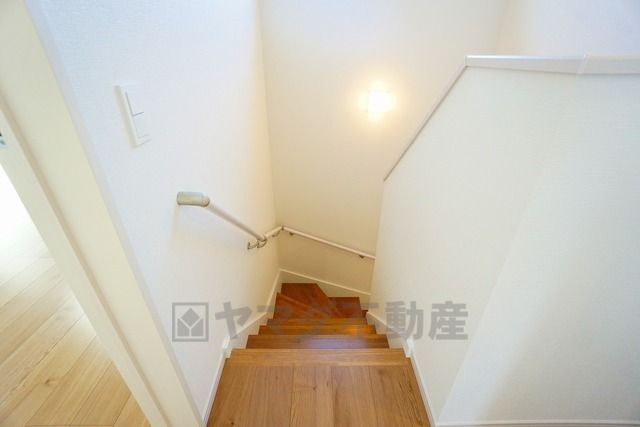 ご年配の方でも安心できる、手すり付き階段です^^段差も低めで設定されてますので安全性にも優れてますね^^