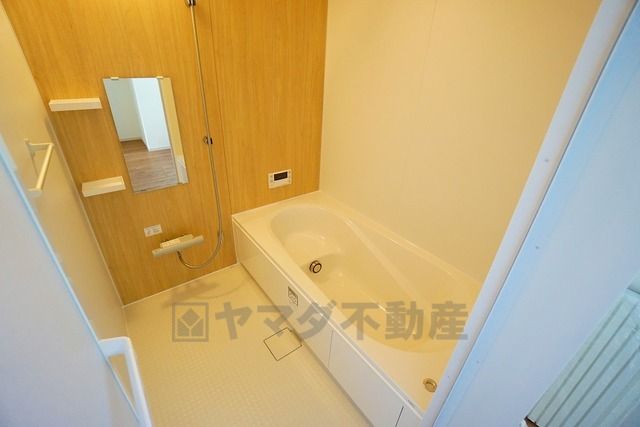 1日の疲れを癒すくつろぎのバスルーム。足を伸ばしてもゆったりと入れるサイズです。お子様と一緒にお風呂に入っても狭くないですね^^