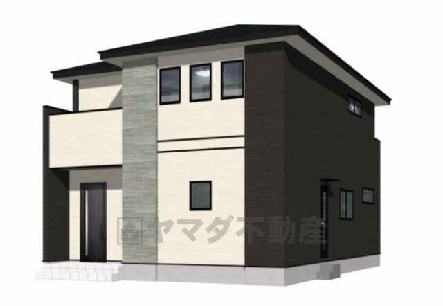 (2号棟)完成予想図。ブラック・ホワイトを基調としたシンプルで飽きの来ない外観です。 設備仕様も充実した新築戸建です。 快適でゆとりのある生活空間で新生活を始めましょう^^