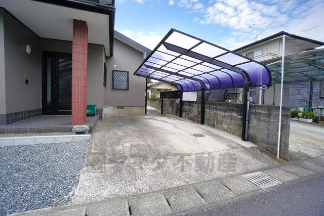 カースペースは1台分。カーポート付き。 耐風圧性能・耐積雪性能に優れた構造で、台風や大雪時も安心。