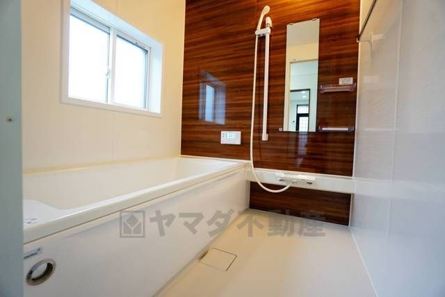1日の疲れを癒すくつろぎのバスルーム。足を伸ばしてもゆったりと入れるサイズです。お子様と一緒にお風呂に入っても狭くないですね^^
