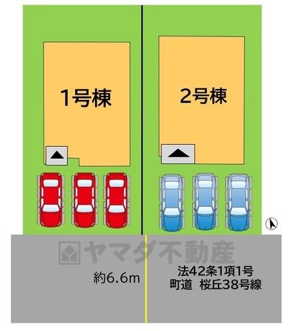 全2区画の新築戸建が新登場です。広々した前面道路は、交通量も少なく小さなお子様も安心。