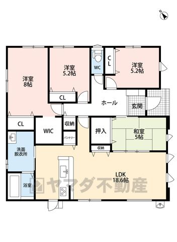 LDK18.6畳(1F)、和5畳(1F)、洋8畳(1F)、洋5.2畳(1F) |