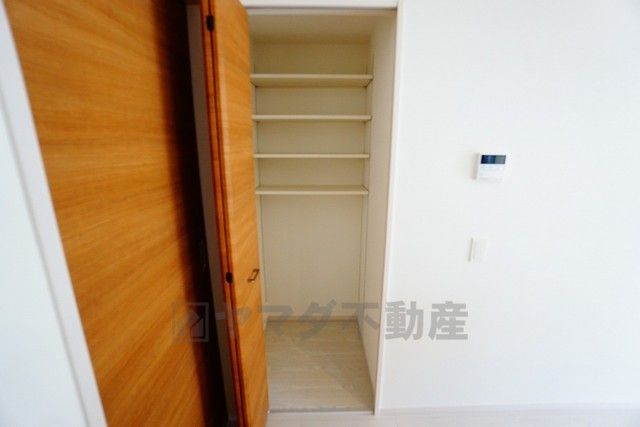 同仕様写真。まとめ買いしてもこの収納量なら心配要らずのパントリー。調理家電や食品のストックをすっきりまとめられ、キッチン周りを広々使えます。