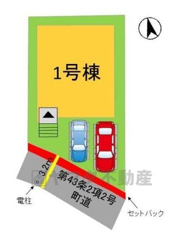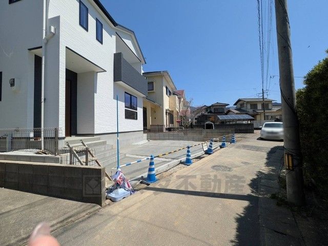 並列駐車2台分^^ 前面道路は公道南西側約4m。 車の通行が少なく小さなお子様がいるご家庭でも安心して過ごせます^^