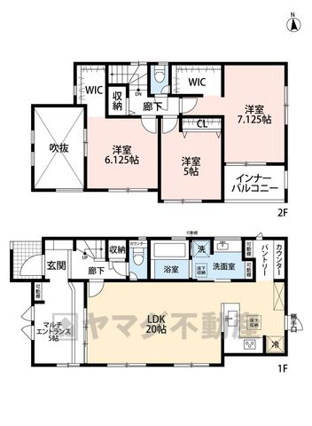 LDK20畳(1F)、その他5畳(1F)、洋7.1畳(2F)、洋6.1畳(2F)、洋5畳(2F) |