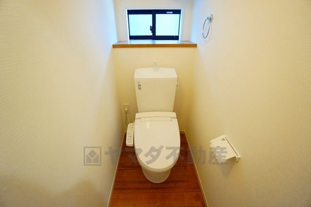 温水洗浄機付トイレです。節水機能もあるので、安心して使えますね。もちろん、1階2階の2ヶ所にトイレがあるので、忙しい朝にもゆとりができますね。