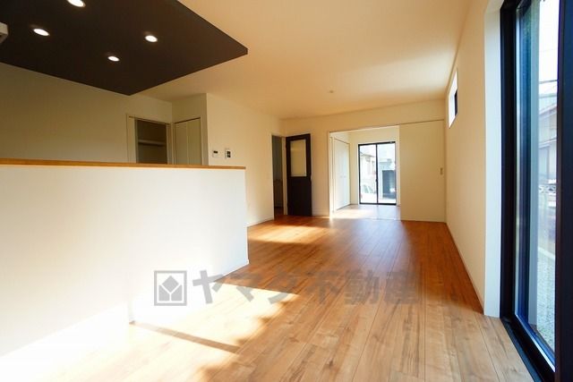 大きな窓のあるリビングは、陽光あふれる明るい空間です。居心地良く、ご家族皆がゆったり寛げる憩いの空間となりそうです。