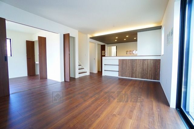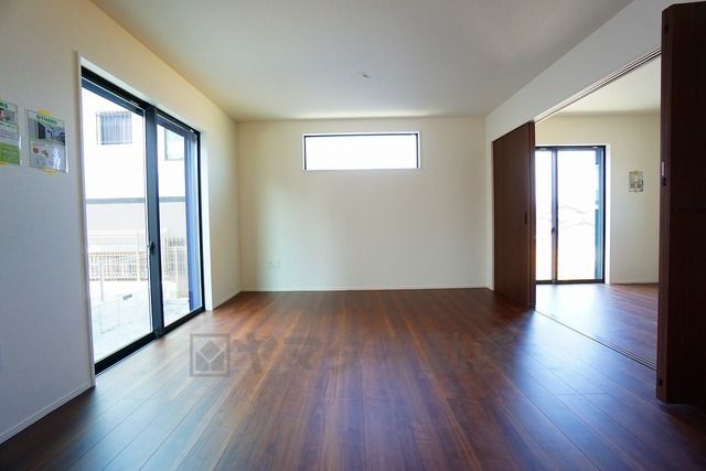 大きな窓のあるリビングは、陽光あふれる明るい空間です。居心地良く、ご家族皆がゆったり寛げる憩いの空間となりそうです。
