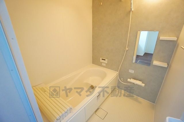 1日の疲れを癒すくつろぎのバスルーム。足を伸ばしてもゆったりと入れるサイズです。お子様と一緒にお風呂に入っても狭くないですね^^