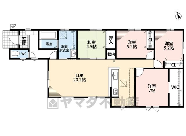 LDK20.2畳(1F)、洋7畳(1F)、洋5.2畳(1F)、和4.5畳(1F) |