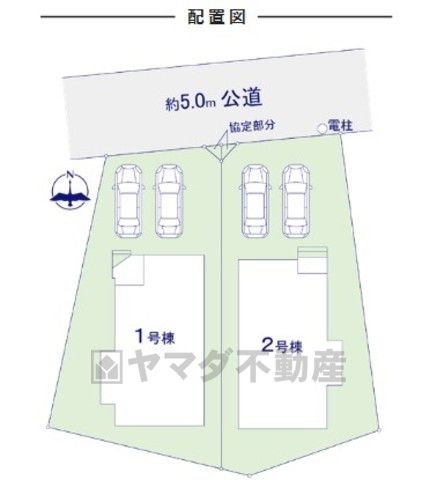 2号棟。カースペース並列2台分を確保^^ 前面道路は公道北側約5m。