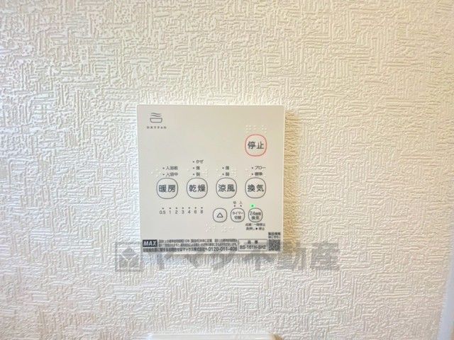 雨の日の洗濯も安心できる浴室暖房乾燥機付き浴室。リモコンで操作もボタン1つで簡単。 浴室暖房乾燥機には、暖房、乾燥、涼風、換気の4つの機能が付いています。タイマー付きです。