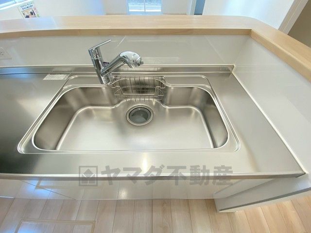 広々とした凸型シンクに洗剤ポケットを標準装備。大きなお鍋など洗いやすいです。洗剤や石鹸、スポンジもすっきりできる収納付き。