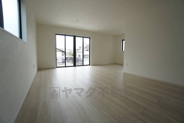 大きな窓のあるリビングは、陽光あふれる明るい空間です。居心地良く、ご家族皆がゆったり寛げる憩いの空間となりそうです。