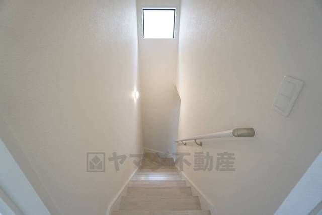ご年配の方でも安心できる、手すり付き階段です^^段差も低めで設定されてますので安全性にも優れてますね^^