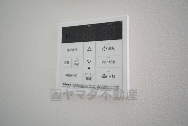 キッチン横からお湯張り、追い炊き、足し湯がボタン一つで楽々操作できる給湯機リモコンです^^忙しい夕飯の準備の時間帯に重宝しますね。