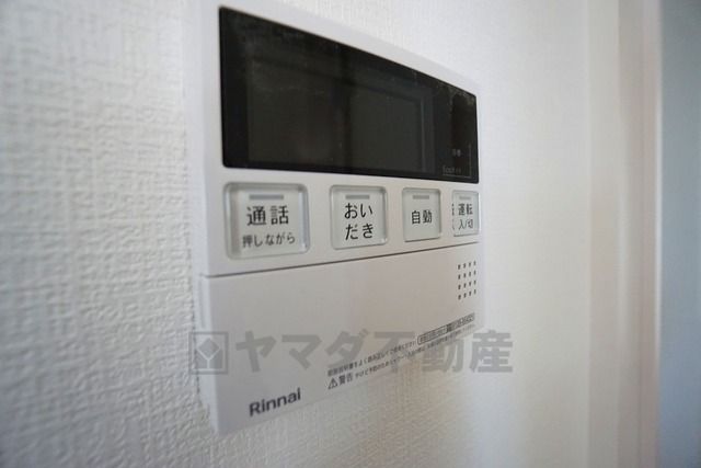 キッチン横からお湯張り、追い炊き、足し湯がボタン一つで楽々操作できる給湯機リモコンです^^忙しい夕飯の準備の時間帯に重宝しますね。