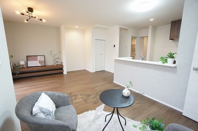 対面式キッチンを中心としたリビングダイニングで家族の会話が弾みそうです。将来にわたって住みやすくプランニングを重ねて設計された間取で日々の生活をしやすい動線を考えた居住空間を創り上げております^^