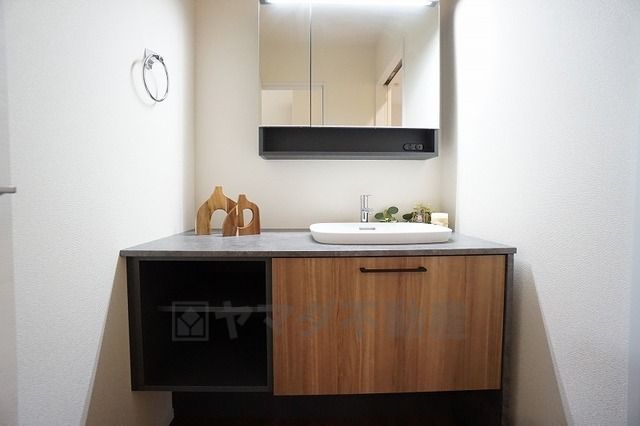 洗面化粧台は脱衣室から独立しており、脱衣室を使用中でも洗面室が使えます^^ 集中してメイクもできそうです^^