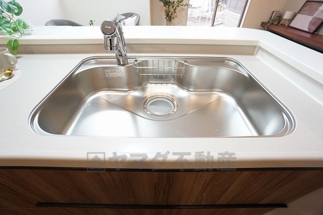 広々とした凸型シンクに洗剤ポケットを標準装備。大きなお鍋など洗いやすいです。洗剤や石鹸、スポンジもすっきりできる収納付き。