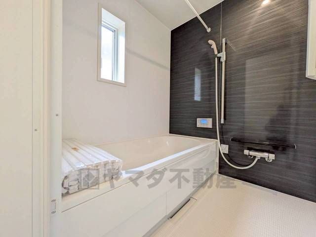 1日の疲れを癒すくつろぎのバスルーム。足を伸ばしてもゆったりと入れるサイズです。お子様と一緒にお風呂に入っても狭くないですね^^