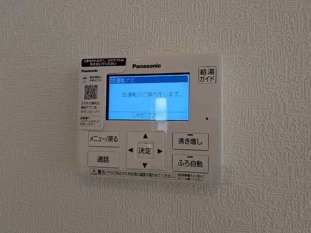 キッチン横からお湯張り、追い炊き、足し湯がボタン一つで楽々操作できる給湯機リモコンです^^忙しい夕飯の準備の時間帯に重宝しますね。