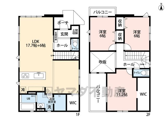 LDK23.7畳(1F)、洋11.2畳(2F)、洋6畳(2F) |