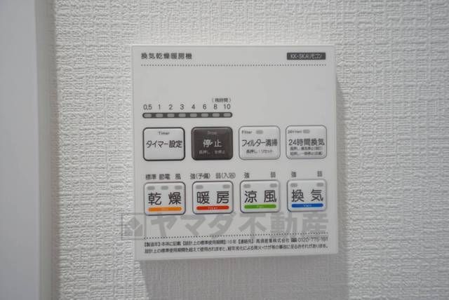 雨の日の洗濯も安心できる浴室暖房乾燥機付き浴室。リモコンで操作もボタン1つで簡単。 浴室暖房乾燥機には、暖房、乾燥、涼風、換気の4つの機能が付いています。タイマー付きです。